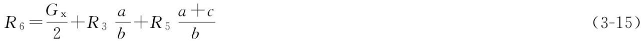 小車主端梁承受的外力有卷筒上鋼絲繩向下的拉力轉(zhuǎn)化到小車主端梁上的壓力R3;有小車橫梁里面的滑輪組鋼絲繩向下的拉力轉(zhuǎn)化到小車主端梁上的壓力R5;有小車自重轉(zhuǎn)化到小車主端梁上的壓力Gx,Gx可在R3的左邊,也可能在R3的右邊,其小車輪距的中心線位置可近似看著Gx的作用力位置。這些力共同對(duì)1—1截面、6—6截面形成壓力R1和R6,R1和R6便是小車的輪壓,對(duì)帶臺(tái)車的小車便是單個(gè)小車輪壓的兩倍。c/2位置為吊鉤組中心線的近似位置,計(jì)算吊鉤中心線*大車兩端的極限距離,可以作為簡(jiǎn)算值用于方案設(shè)計(jì)中,誤差很小。