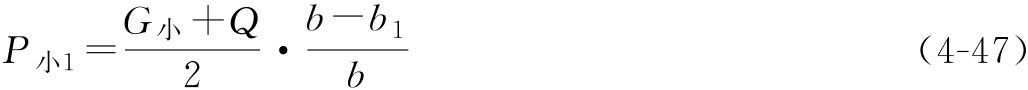 b1——小車重心作用線(圖4-47圖示位置),與P小1車輪之間距離;