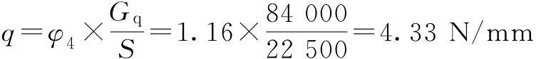 Pg=1.5(GXC+Q)×0.1×0.5×a=1.5×(4+32)×104×0.1×0.5×0.15=4.05×103(N)